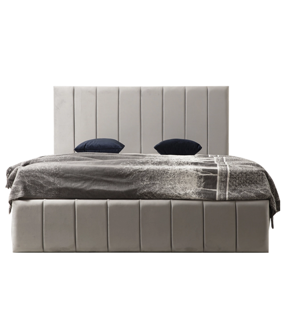 - Design luxueux : Un cadre de lit en bois robuste revêtu de velours haut de gamme, offrant une esthétique noble et épurée.