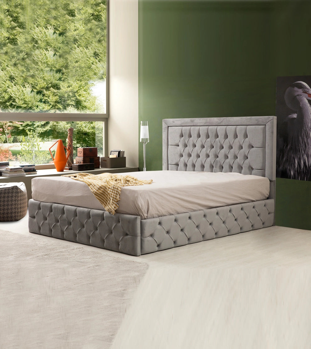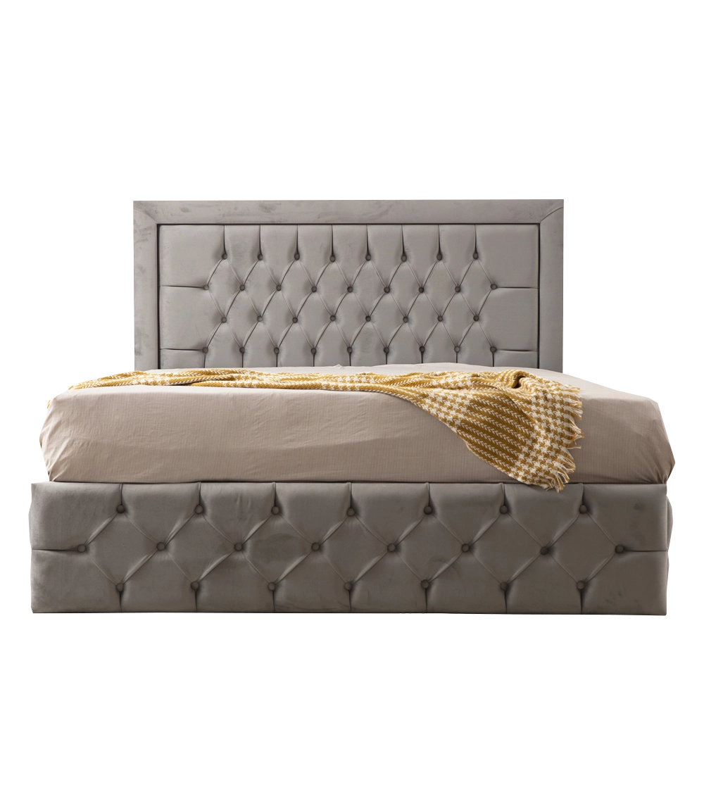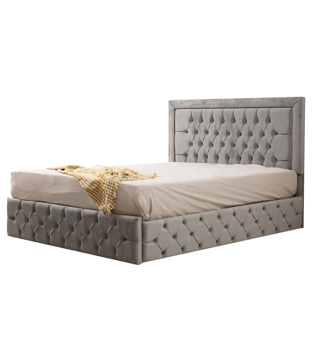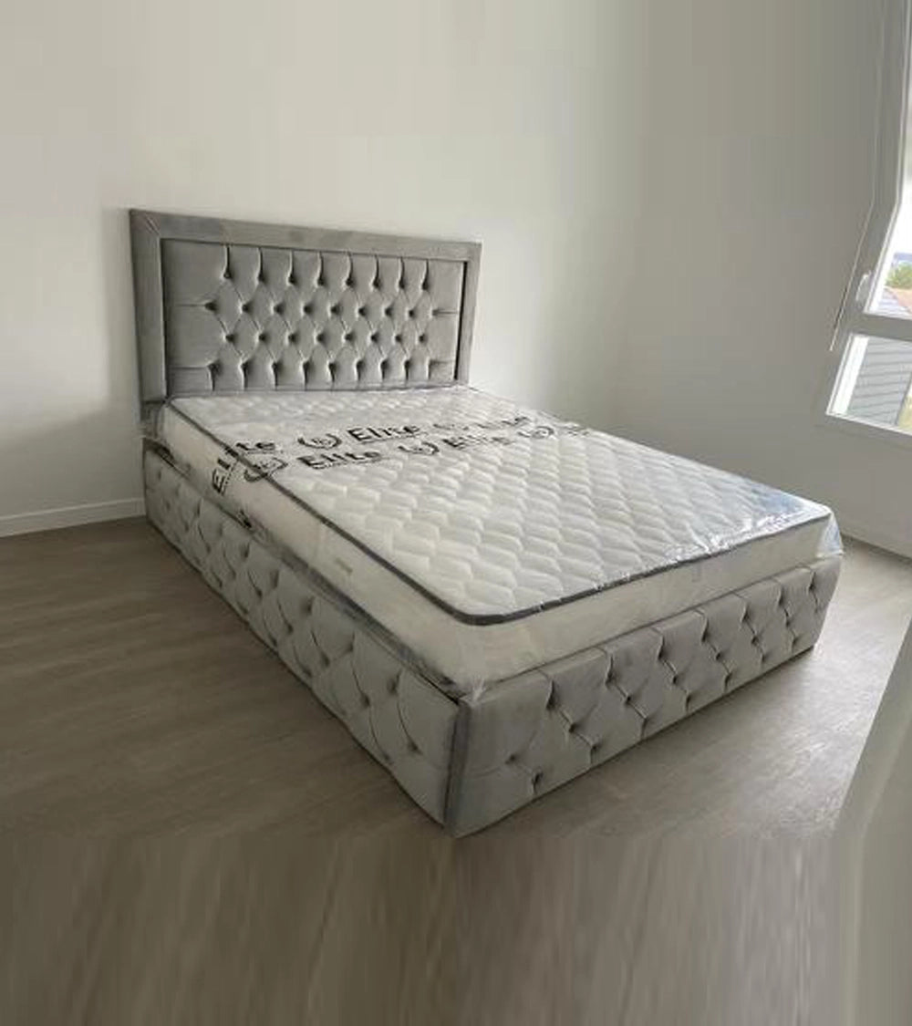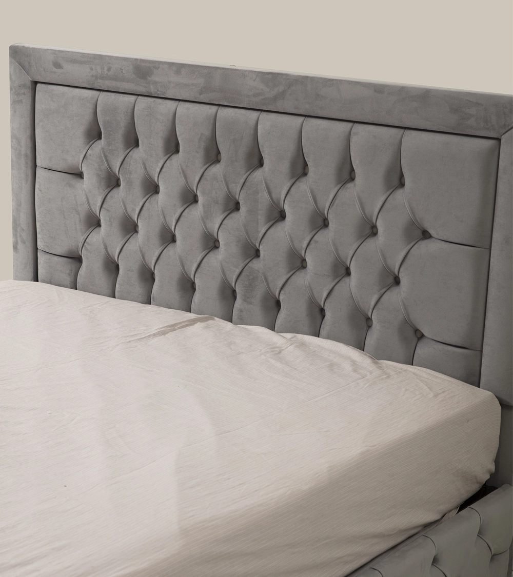 La tête de lit capitonnée vous assure un confort premium pour vos lectures ou moments de détente. Le revêtement en velours gris haut de gamme ajoute une touche chaleureuse et accueillante à ce superbe lit.
