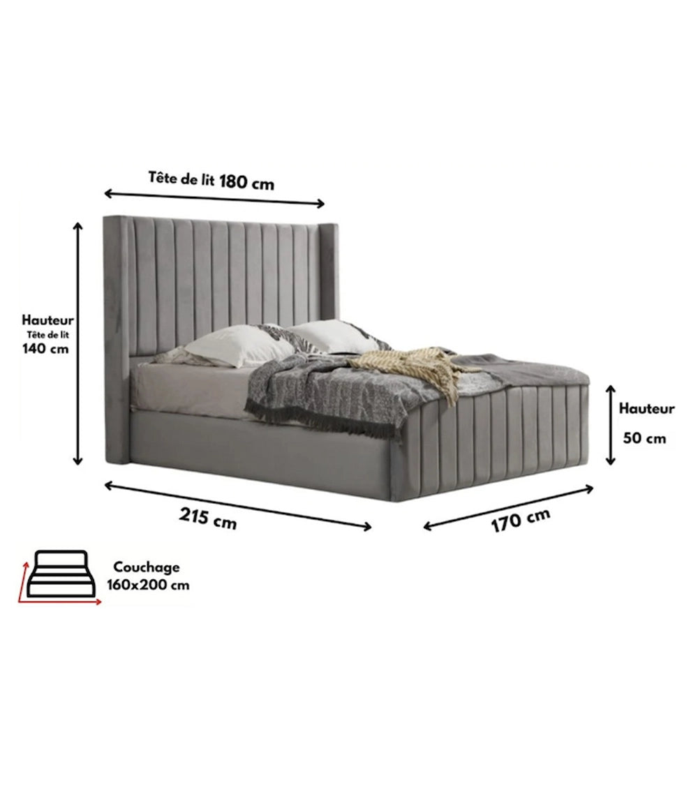 - Variations disponibles : Choisissez parmi un large éventail de dimensions (140x190, 160x200, 180x200) et coloris tendances pour s'adapter à votre décoration.