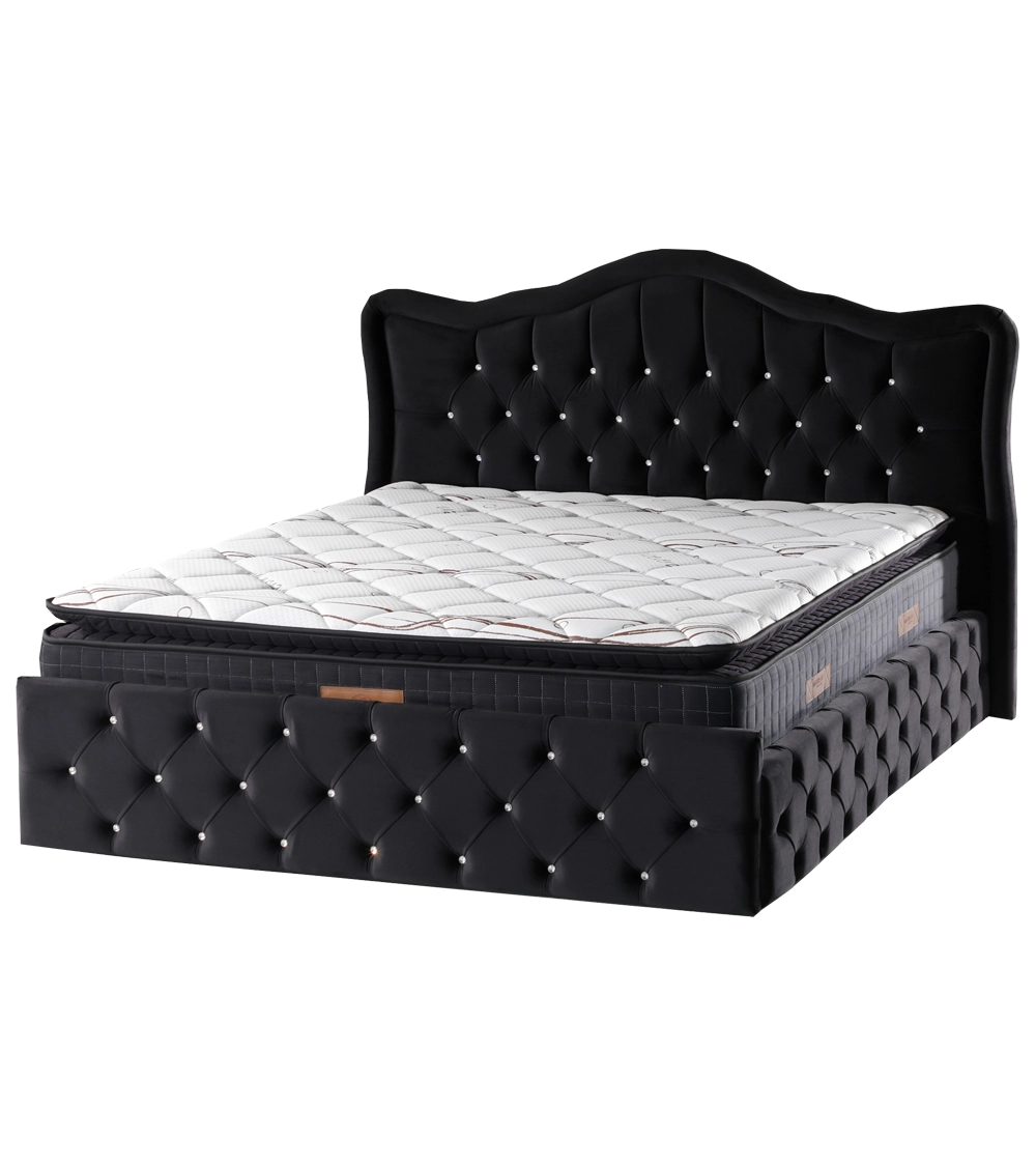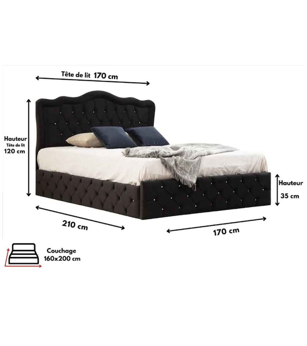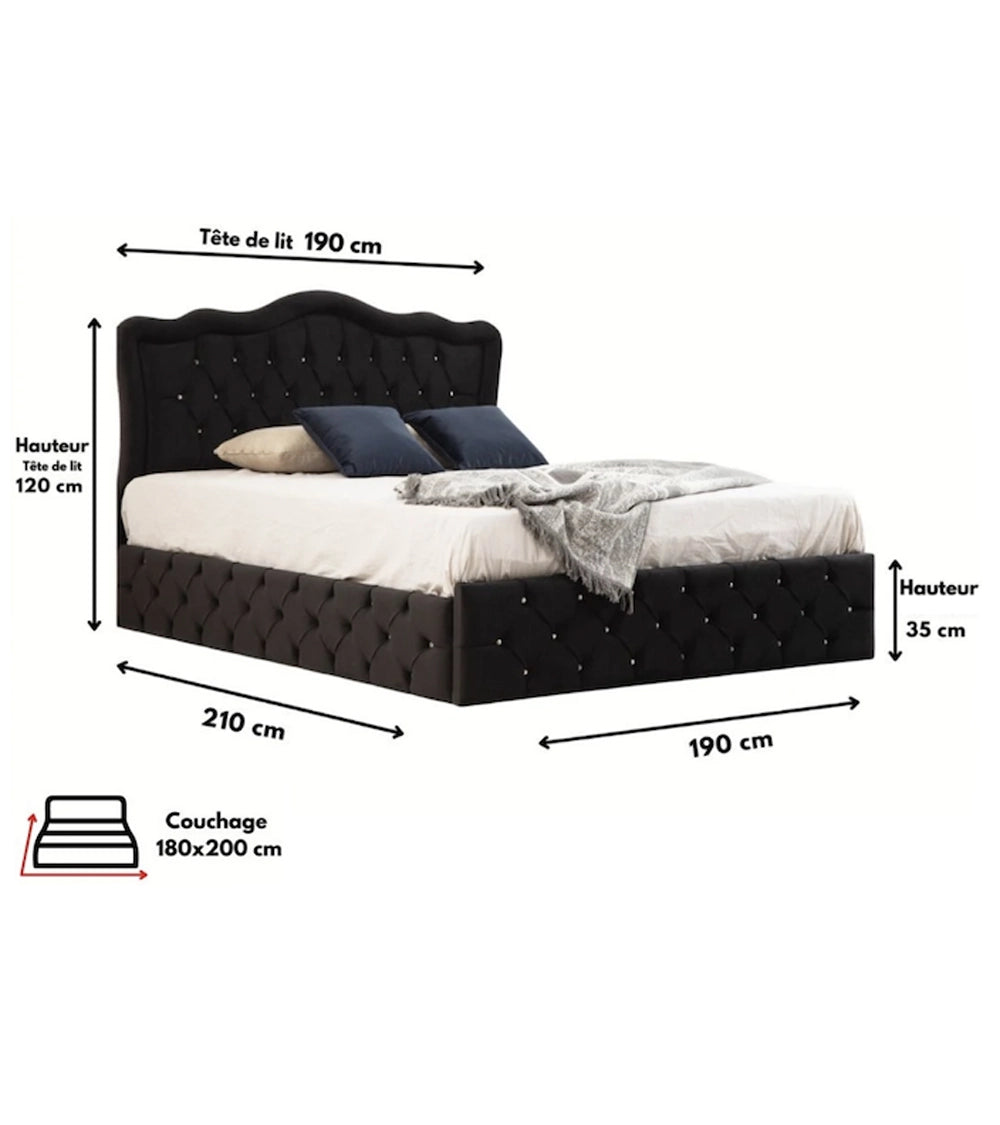 - Détails capitonnés : Double capitonnage de la tête de lit pour un soutien amélioré lors de vos moments de lecture ou de pause, et une finition raffinée avec strass brillant pour une touche glamour.
