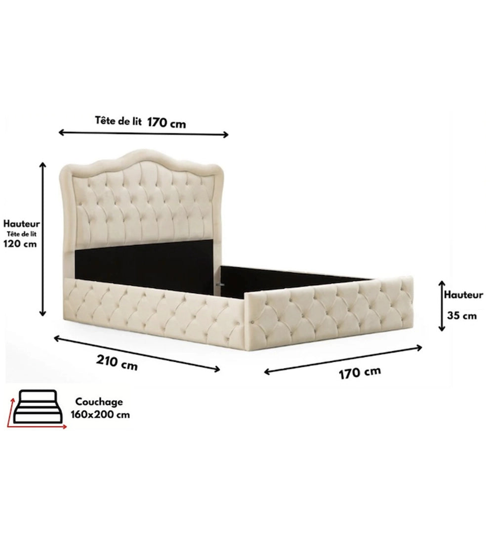 Découvrez le cadre de lit Venise beige, une parfaite alliance entre style moderne et confort absolu. Doté d'un revêtement en velours doux et d'un design élégant capitonné, ce lit transformera instantanément votre chambre en un havre de paix raffiné. Idéal pour les amateurs de décoration chic, ce cadre de lit offre une touche de glamour discret avec ses finitions en strass diamantés.