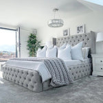 - Design épuré : Velours gris aux finitions capitonnées pour une chambre chic et élégante.