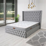 Composition du lit : - Tête de lit capitonnée en velours avec mousse HR pour un confort maximal.