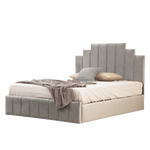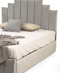 - Structure géométrique avec tête de lit recouverte de velours doux, garantissant une surface agréable au toucher.