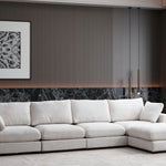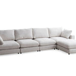 Canapé Julia Modulable - Tissu Chenille Blanc - 4 Places + 1 Pouf