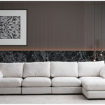 Adoptez le canapé Julia modulable pour apporter confort, style et flexibilité à votre espace de vie. Optez pour ce modèle tout en tissu chenille blanc, élégant et moderne, pour un salon ultra tendance et accueillant.