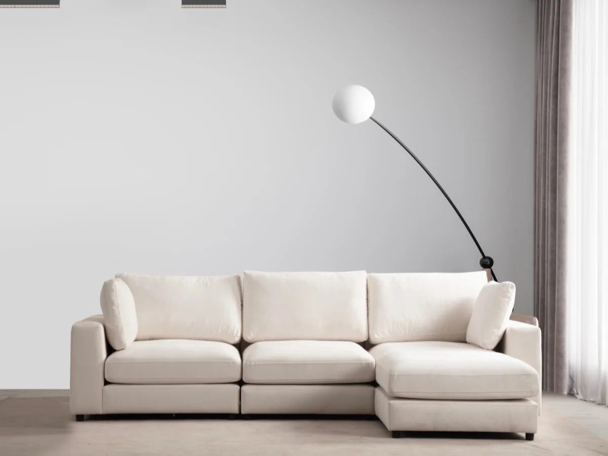 Canapé Julia Modulable Velours Blanc avec Pouf : Élégance, Confort et Modularité
