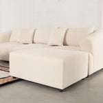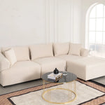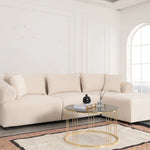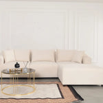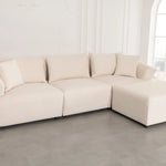 Le canapé modulable Lokkum avec pouf est à la fois un bijou de design et un exemple de confort. Découvrez ce canapé au velours blanc anti-tâche qui s’adapte à tous les intérieurs pour créer un espace chic et contemporain.