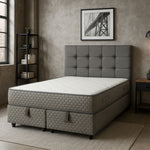 Lit Coffre Oslo Gris Capitonné avec Matelas Ressorts Ensachés 25 cm – 140x190 et 160x200