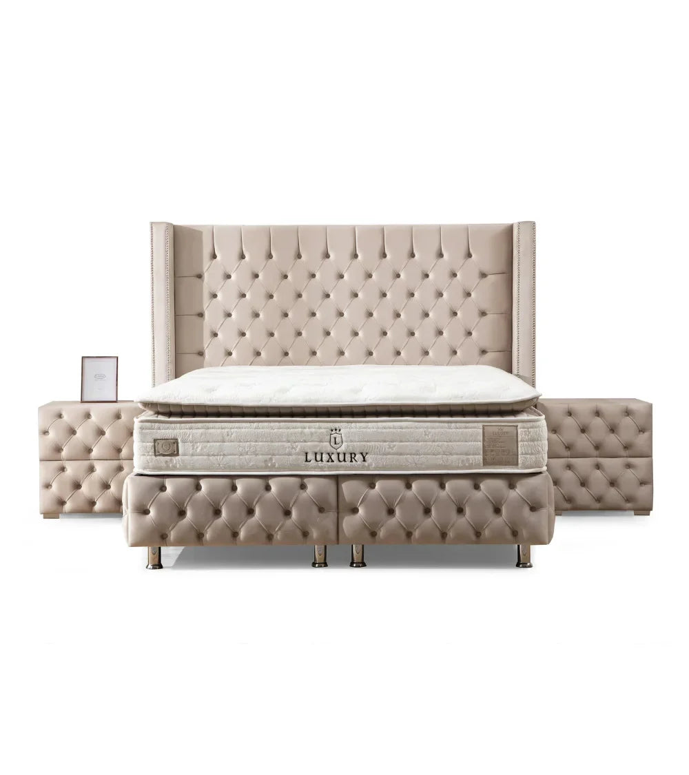 Lit Coffre Armony Beige - Élégance et Fonctionnalité au Service de Votre Confort