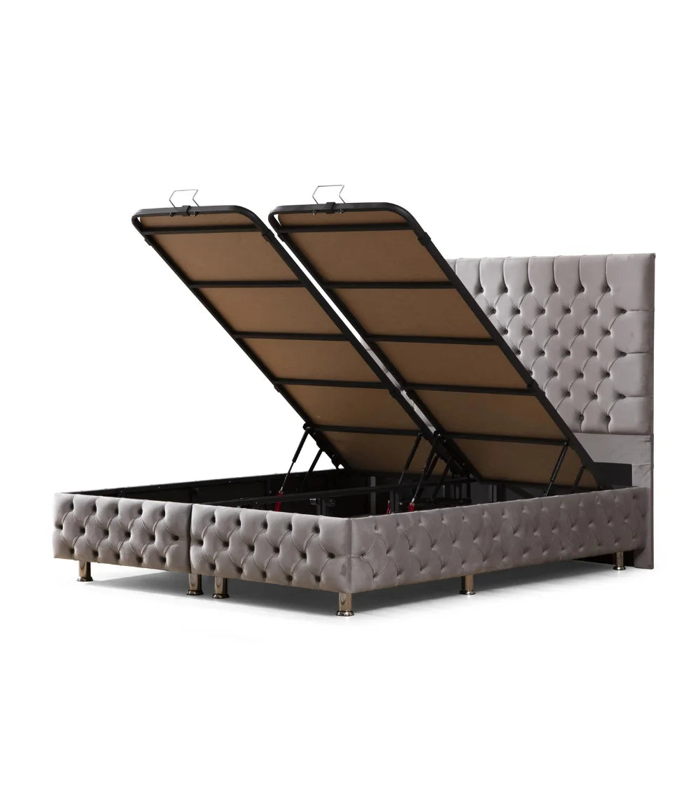 Le lit coffre 2 places Bella est non seulement un excellent choix esthétique grâce à son velours doux et son capitonnage, mais c'est aussi une solution de rangement fonctionnelle. Que vous ayez peu d’espace ou que vous aimiez tout simplement l’ordre, son coffre intégré vous permet de maximiser le rangement tout en gardant votre chambre stylée et organisée. Ce lit est conçu pour vous apporter à la fois confort et praticité, nuit après nuit.