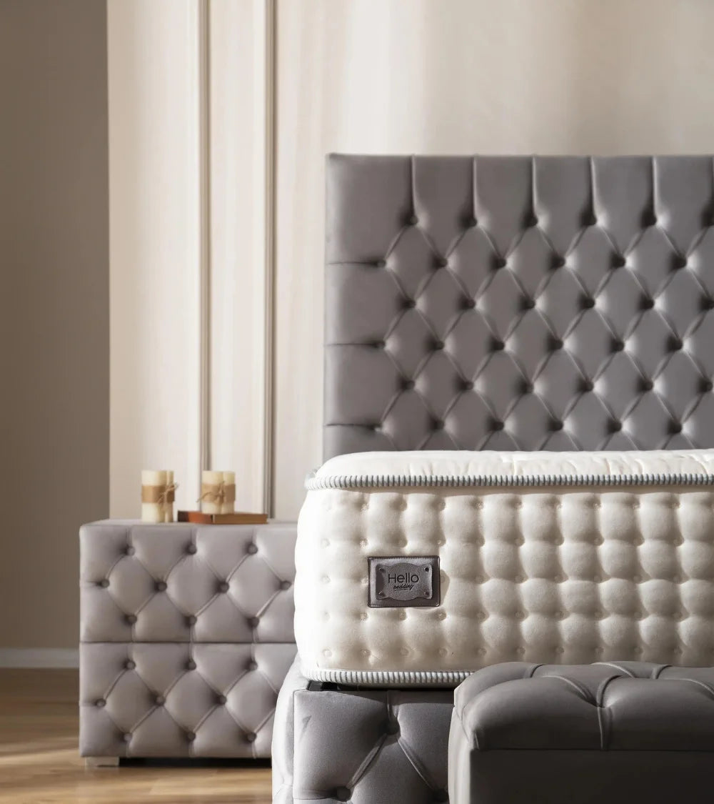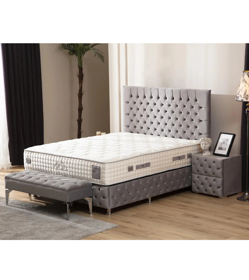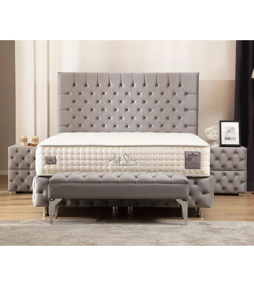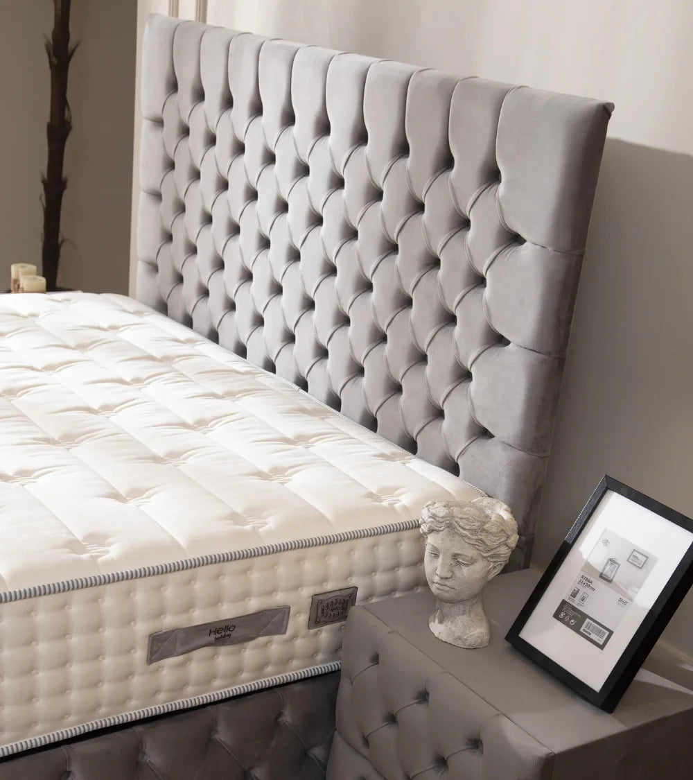 - Design élégant : Le velours gris capitonné offre à ce lit un look à la fois chic et intemporel.