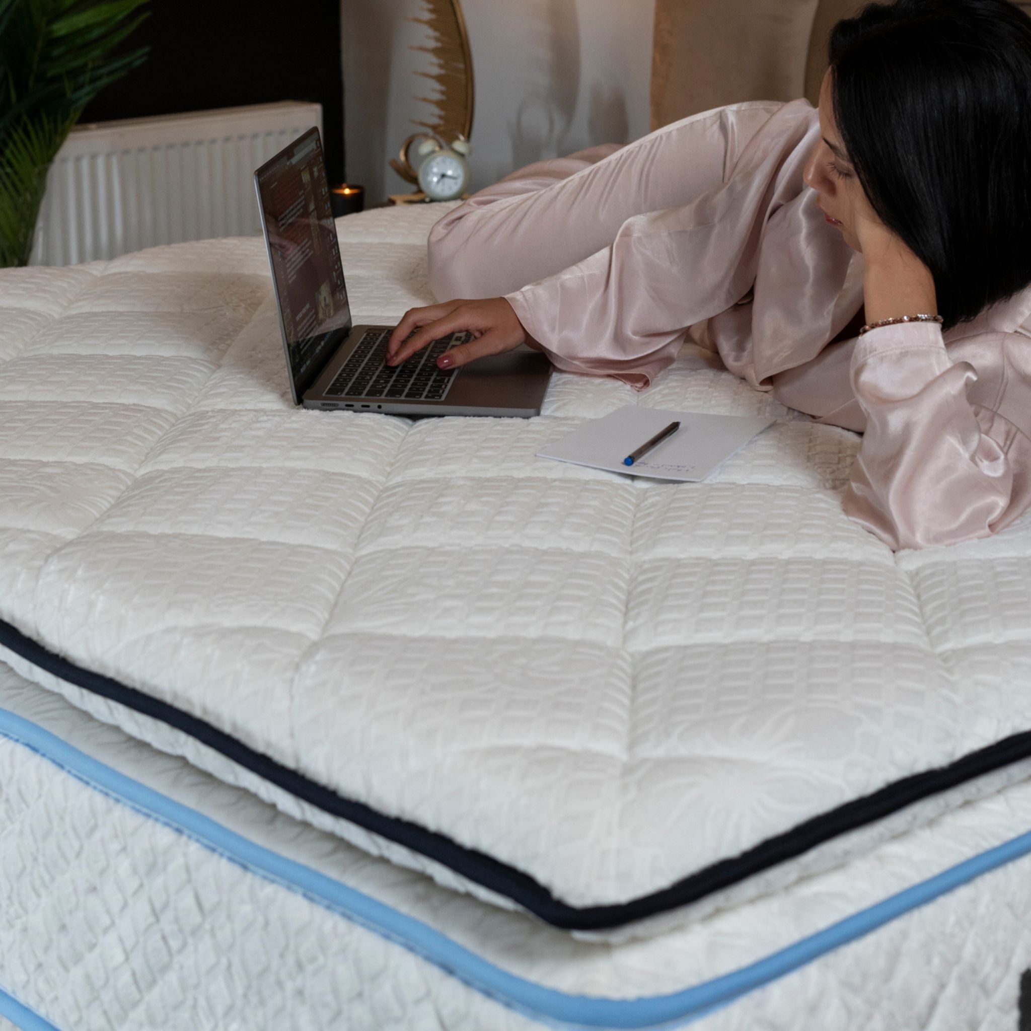 - Matériaux du surmatelas : Fibres en silicone, mousse plûme haute densité