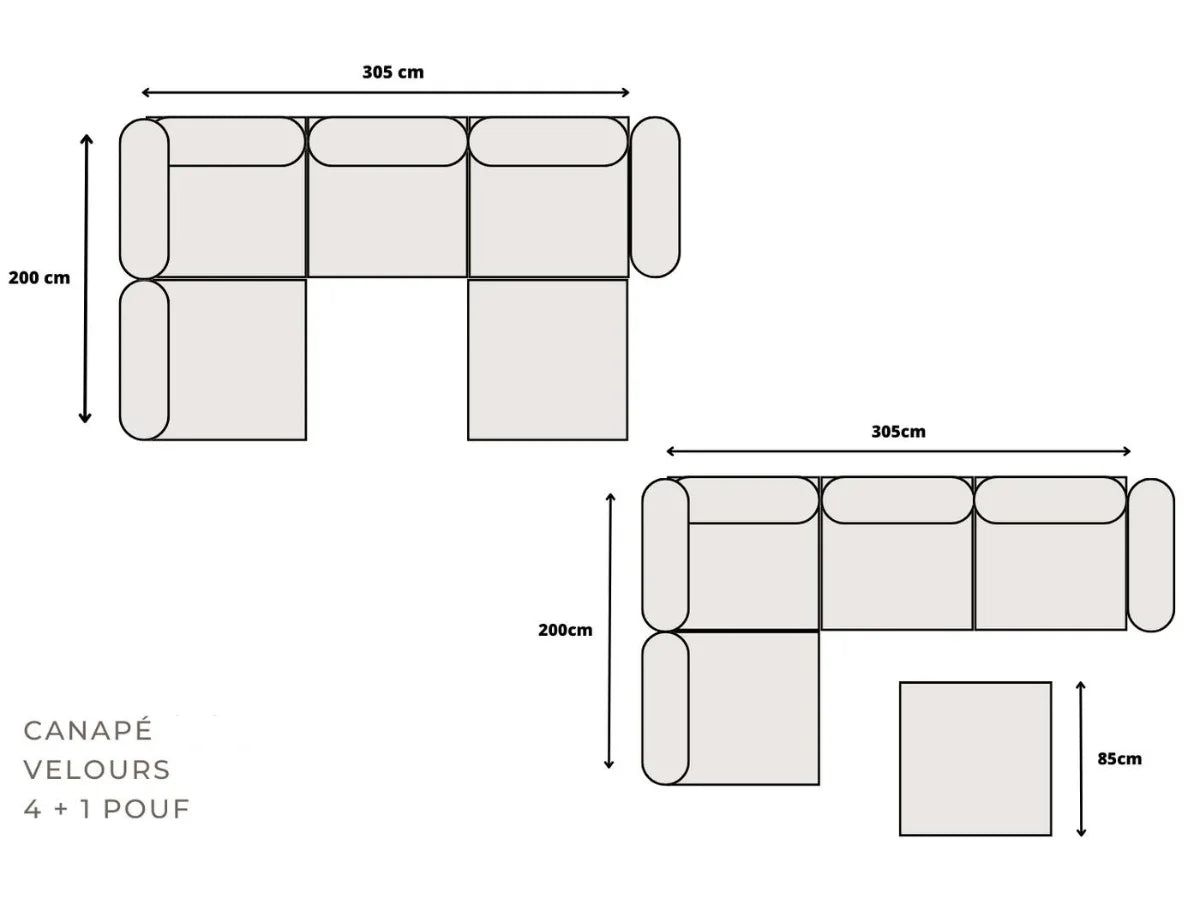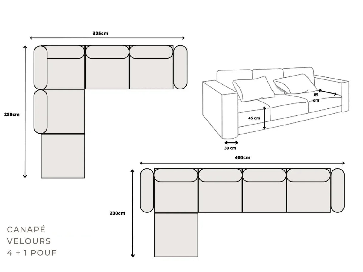 Ce canapé modulable en velours est très facile à entretenir. Un passage régulier de la brosse à poils longs ou un chiffon doux suffira à garder votre canapé comme neuf. Pour les salissures plus tenaces, n'hésitez pas à utiliser des produits spécifiques pour le velours, garantissant ainsi une conservation optimale de sa couleur et texture.